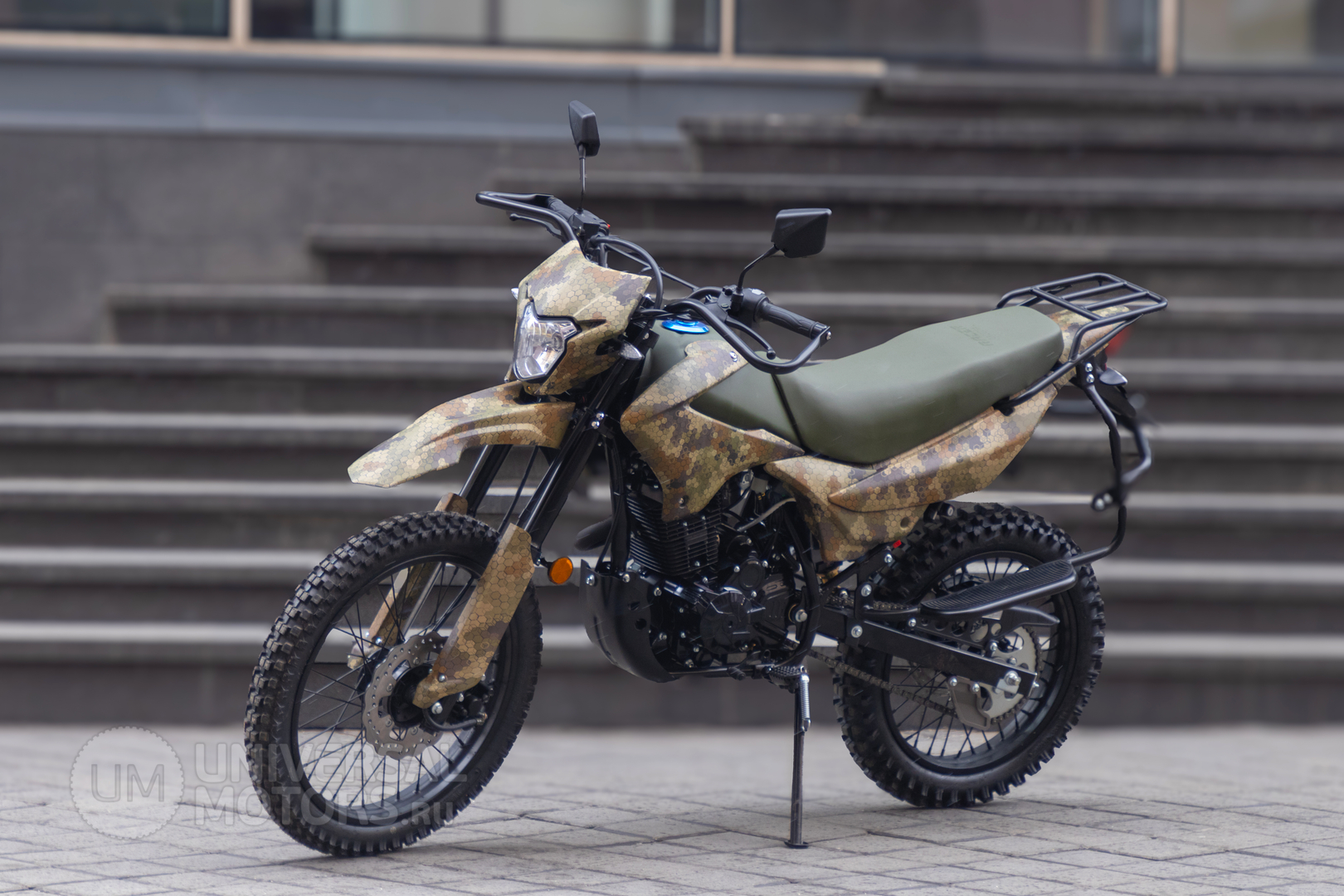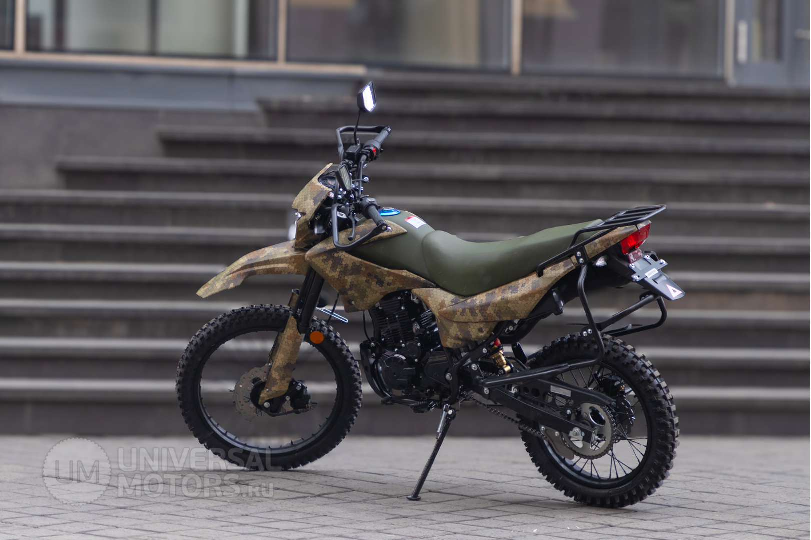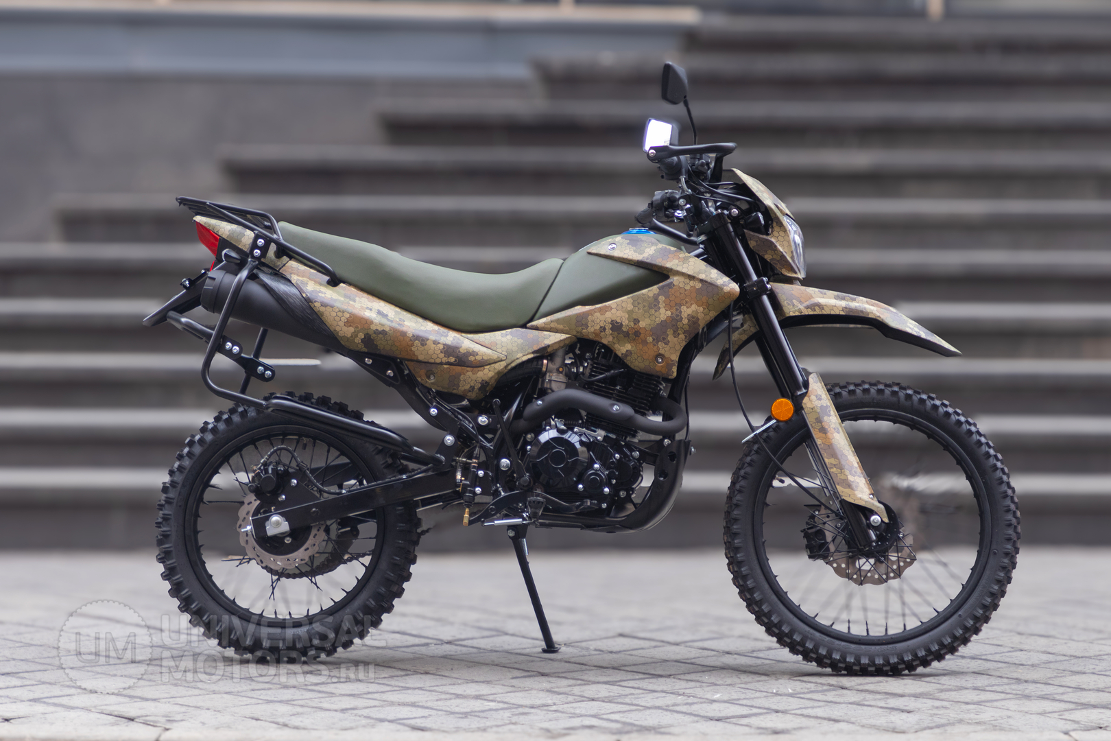 Габариты, мм 2070х809х1110 Колесная база, мм 1430 Тип двигателя 2-х клапанный с балансировочным валом Объем двигателя см3 270 Мощность, л.с. (об/мин) 19,7 (7500) Система охлаждения Масляное Карбюратор Тайвань КПП Сцепление (1-N-2-3-4-5) Стартер Электро и кик-стартер Объем топливного бака, л 12,0 Расход топлива, л/100 км 3,4 Макс. скорость, км/ч >=145 Макс. нагрузка, кг 188 Вес, кг 128 Размер колеса 90/100-21 / 110/100-18 Колеса (материал) Cпицованные (сталь) Шины Nylon (Тайвань) Аккумулятор 12V/7Ah Тормоза передние/задние Дисковые/Дисковые Приборная панель Электронная (LCD панель) Подвеска передняя Телескопическая с регулировкой жесткости
