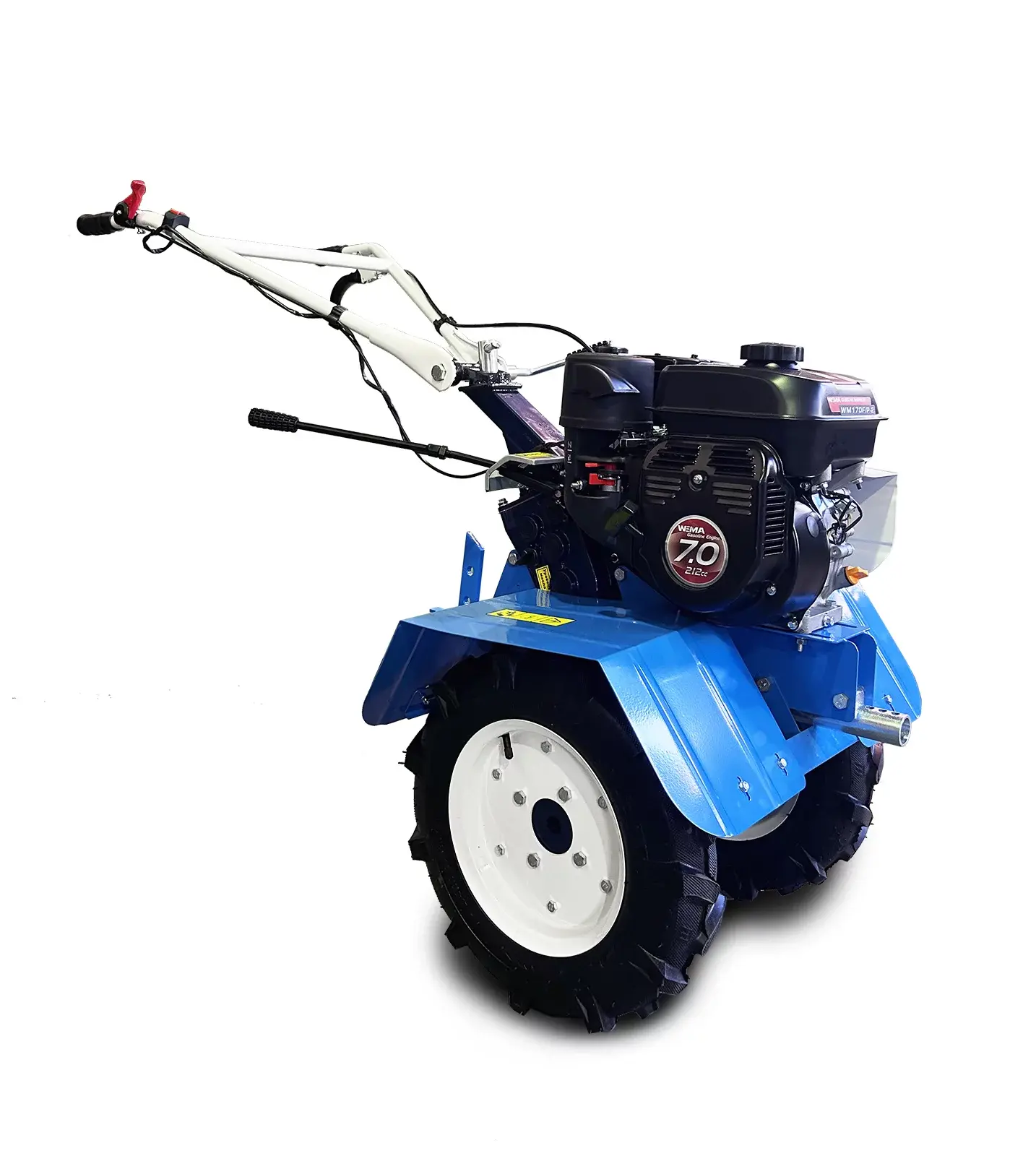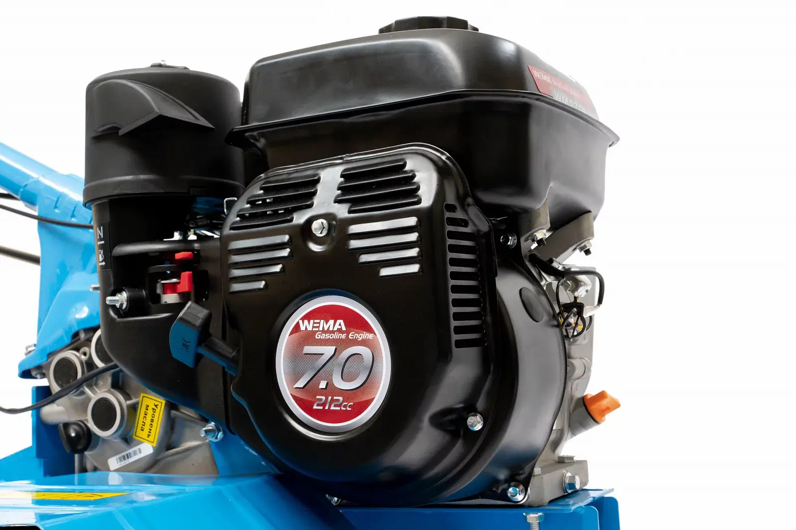 Особенности: - простая конструкция позволяет быстро проводить техническое обслуживание. - благодаря реверсивной трансмиссии устройством легко управлять даже в ограниченном пространстве. - регулировка руля по высоте позволяет пользователю настроить его под свои индивидуальные параметры. - защитные крылья предотвращают попадание грязи и камней во время работы. - высокопроизводительный 4-тактный бензиновый двигатель WEIMA 170 F/P-2 мощностью 7 л.с. - запуск при помощи ручного стартера. - объем топливного бака - 3.6 л. - объём масла в картере - 0,6 л. - число передач2 вперед / 1 назад. - клиноременное сцепление. - шестерёнчатый редуктор. - глубина вспашки - 150 мм. - ширина вспашки - 682 мм. - в комплекте фрезы для рыхления. - набор фрез - 4 (16 ножей) Рекомендации: Мотоблок Нева МБ Энергия Мини арт. WM170F/P-2 - рекомендован для обработки почвы на участках небольших и средних размеров.